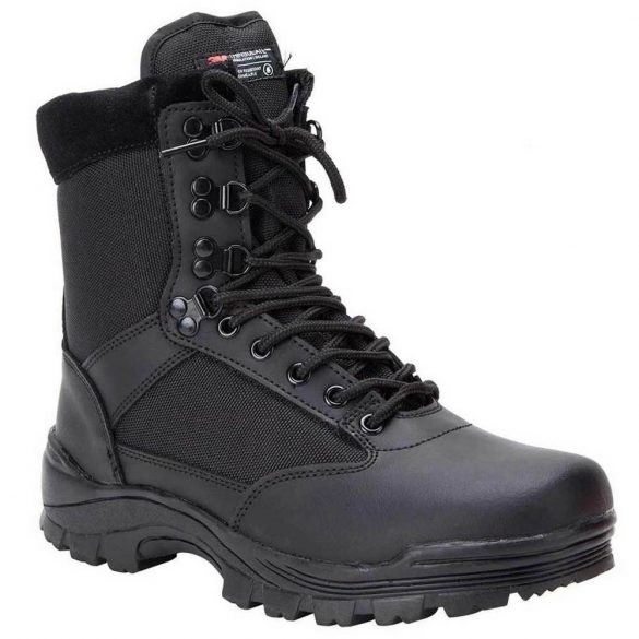 A német MIL-TEC éáltal gyártott kiváló minőségű, mégis kedvező árú bőr-gyöngyvászon kombinációjú THINSULATE bélésű , oldalt zippzáros bakancs.
