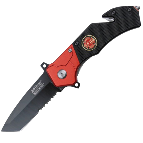 Kiváló minőségű M-TECH egykezes rescue zsebkés rozsdamentes acél TANTO pengével, nyitásrásegítővel, ergonomikus markolattal, üvegtörővel, hevedervágóval.